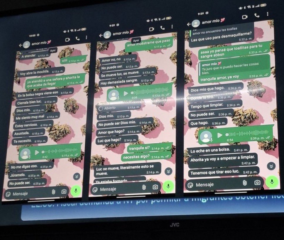 En una captura de pantalla se puede leer que Diana “N” escribe: En la bolsa negra viene “eso”, en referencia al recién nacido. Tras un par de audios le replica: «Amor no, no, no. Se mueve Luc, se mueve. Hay demasiada sangre».