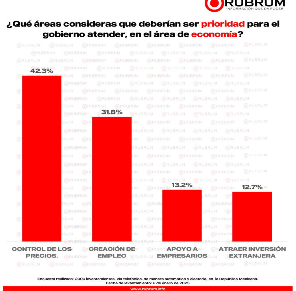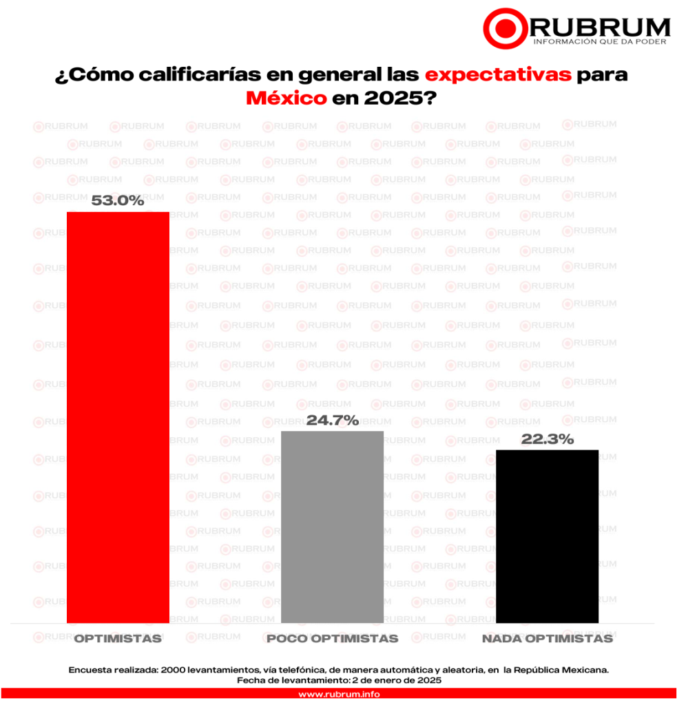 RUBRUM compartió su última encuesta sobre la expectativa ciudadana para este 2025, donde informó la perspectiva de la población mexicana en torno a temas clave como economía y seguridad para este año nuevo.