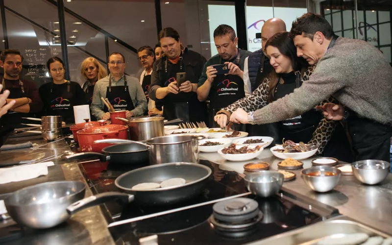Además, se realizó un taller culinario y de degustación, donde los asistentes aprendieron a rellenar gorditas de maíz azul con pierna de cerdo en salsa de chile colorado ya su vez, pudieron probar carne seca, la machaca, el queso menonita y una variedad de salsas y chiles.