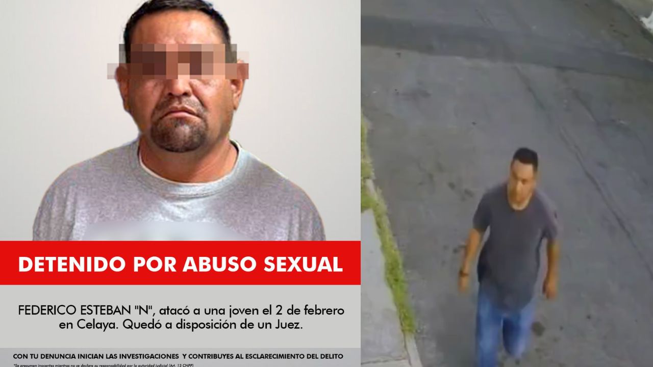 La Fiscalía General del Estado de Guanajuato, confirmó que la tarde del miércoles fue aprehendido Federico Estebán “N”, de 45 años, por el delito de abuso sexual contra una joven que ocurrió el pasado 2 de febrero en Celaya.