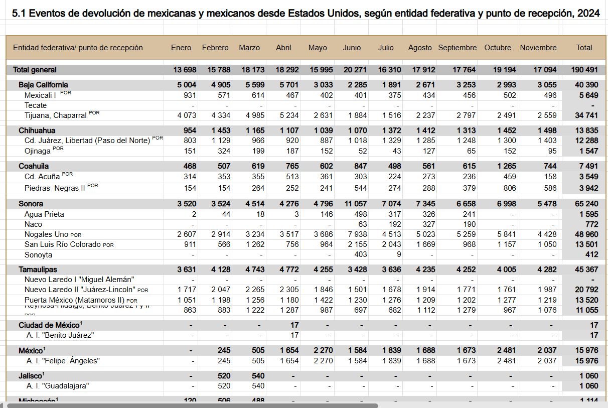 A pesar de que Donald Trump advirtió desde su primera campaña presidencial en 2015 su intención de endurecer las políticas migratorias, según el boletín estadístico anual de migración del Gobierno de México, las deportaciones durante los dos primeros años de su mandato fueron menores que las registradas en 2022. Incluso, las deportaciones del primer año de su presidencia (2017) fueron considerablemente más bajas que las de 2023 y 2024, años bajo la administración del presidente saliente, Joe Biden.