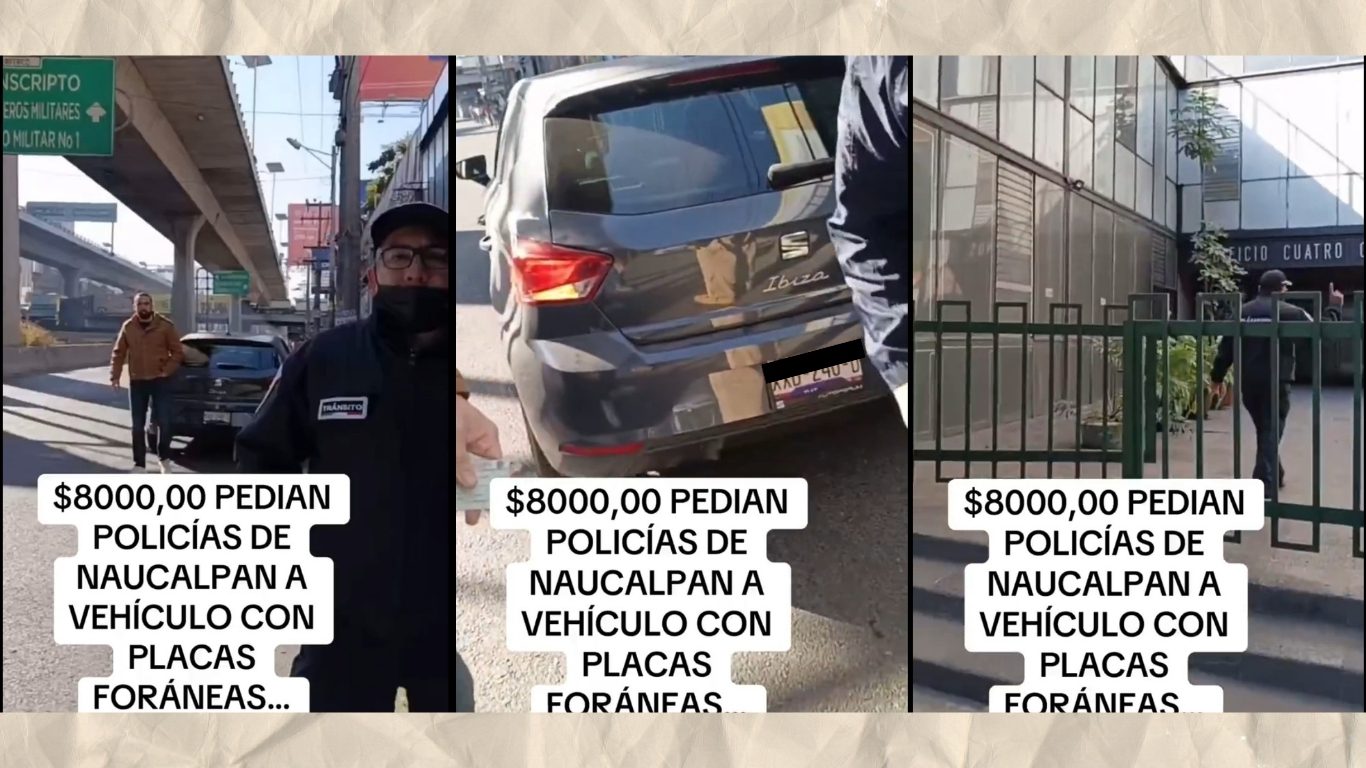 Un video captó a los presuntos elementos de tránsito del Estado de México extorsionando a un conductor por portar placas foráneas.