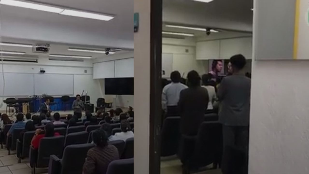El evento religioso, celebrado en el auditorio “Joaquín Ancona Albertos” de la Facultad de Ciencias Físico Matemáticas, quedó registrado en un video que circuló rápidamente entre los grupos estudiantiles. En las imágenes aparece el director de la facultad, Dr. Gabriel Kantún Montiel, participando como anfitrión.