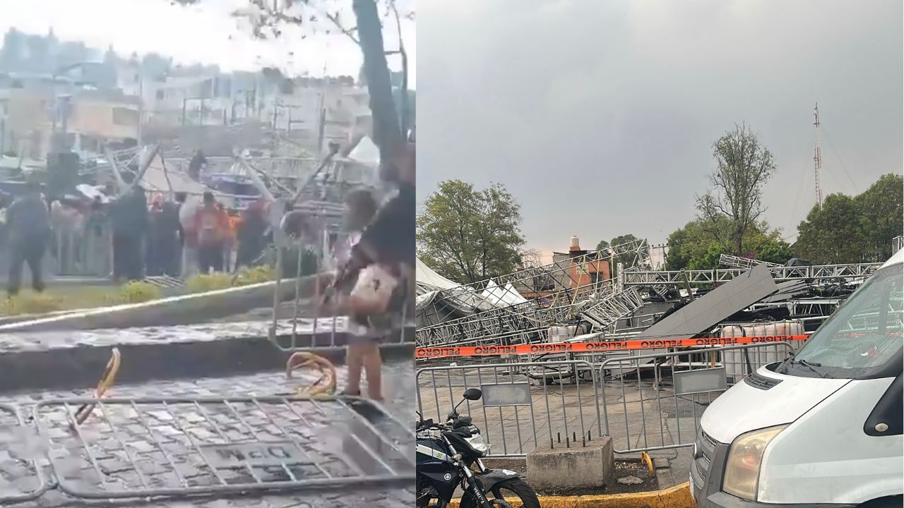 La Secretaría de Gestión Integral de Riesgos y Protección Civil detalló que la estructura que formaba parte del montaje de un escenario colapsó alrededor de las 15:50 horas como consecuencia de las fuertes rachas de viento registradas en la zona.