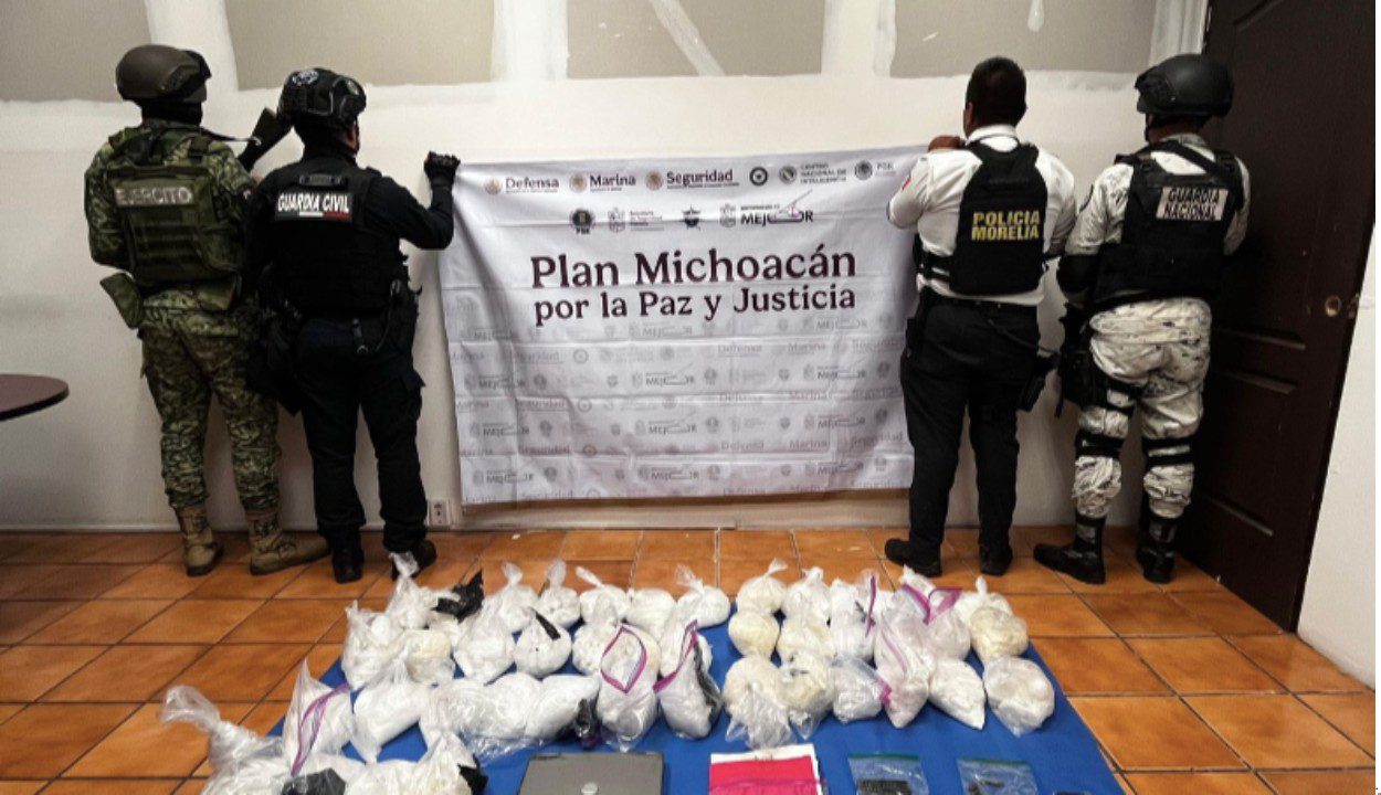 La Secretaría de Seguridad Pública (SSP) aseguró un inmueble con indicios de ser un laboratorio de drogas en Morelia, donde se incautaron 43 kilogramos de una sustancia con características de metanfetamina.