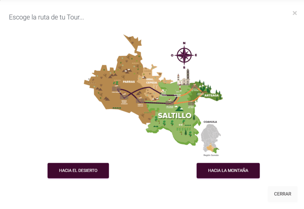 El recorrido inicia en Saltillo y atraviesa los municipios de Arteaga, General Cepeda y Parras de la Fuente.