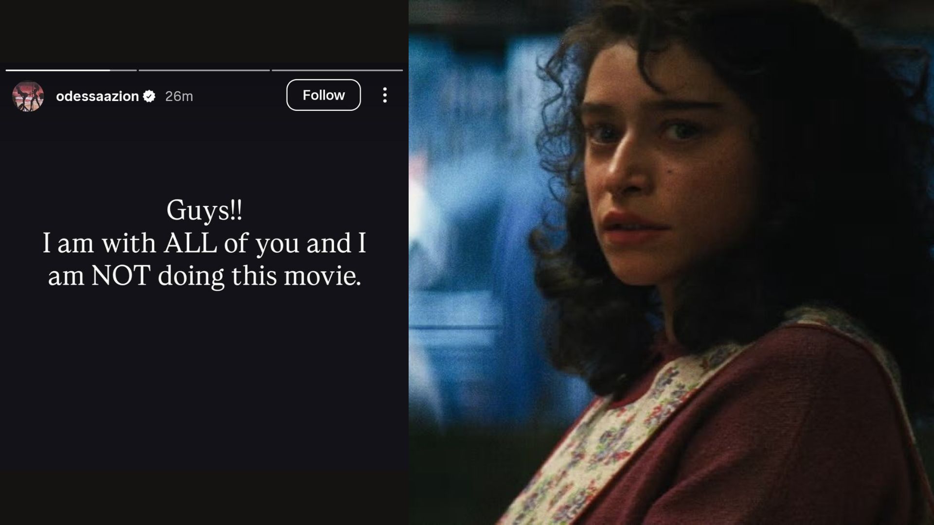 A’zion también manifestó su apoyo a la idea de que el papel sea interpretado por alguien cuya herencia cultural coincida con la del personaje, subrayando que “nunca tomaría un papel destinado a otra persona” y que hay muchas actrices “más que capacitadas” para asumir la interpretación de Zoe Gutiérrez.