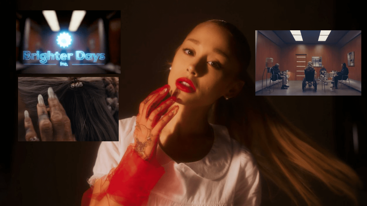 La intérprete de “Thank You, Next”, compartió a través de sus redes sociales un pequeño clip de lo que parece ser el teaser de su cortometraje Brighter Days Ahead, dejando mucho a la imaginación, ya que solo se observa un cuarto de lo que podríamos interpretar como una sala de espera de “Brighter Days Inc” con personas, mientras escuchamos a alguien llamando a «Pechaes». Según fanáticos con este adelanto, Ariana Grande nos da indicios de que interpretará una versión mayor de ella misma de nombre Peaches en silla de ruedas.