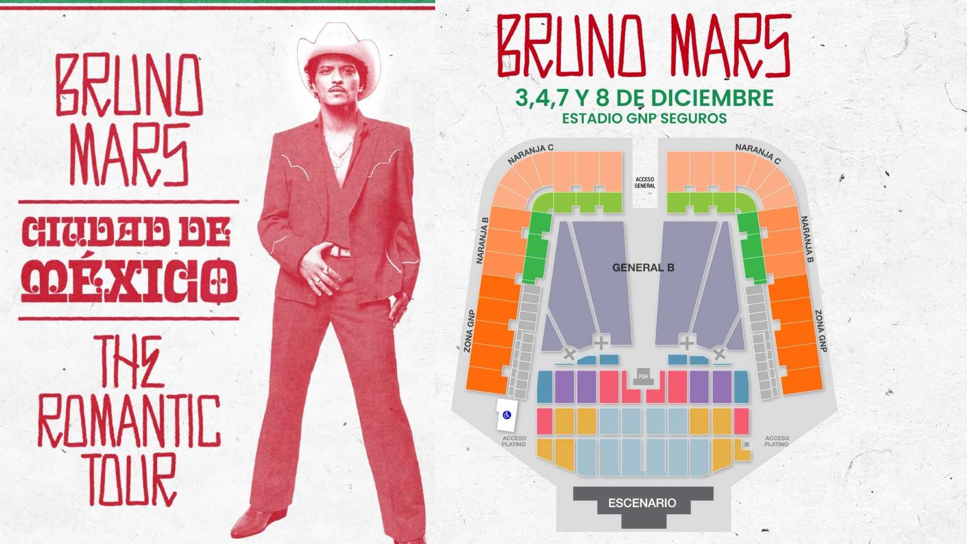 ¿Preparados? El regreso de Bruno Mars a México ya tiene precios confirmados, pues la promotora OCESA dio a conocer el costo oficial de los boletos para los conciertos que el cantante ofrecerá en el Estadio GNP Seguros de la Ciudad de México como parte de su gira The Romantic Tour.