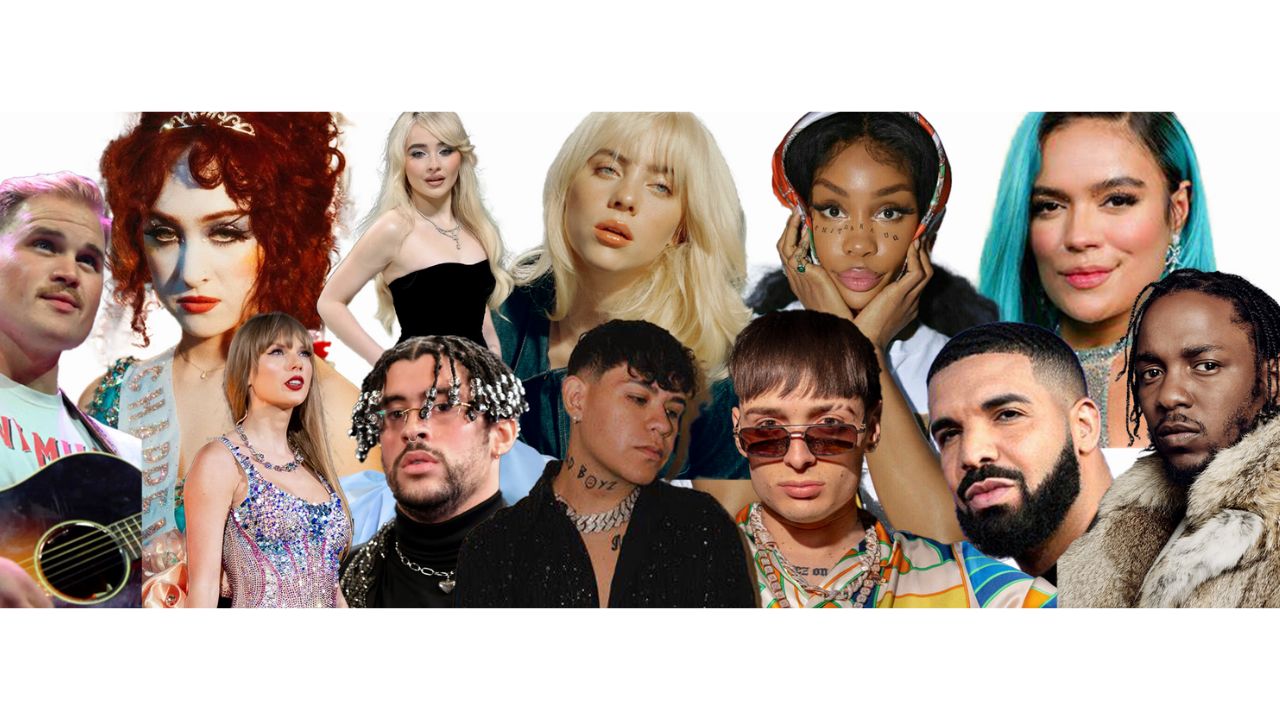 - Bad Bunny, Benson Boone, Chandler Moore, Jung Kook, Naomi Raine, Shaboozey y SZA (seis cada uno);