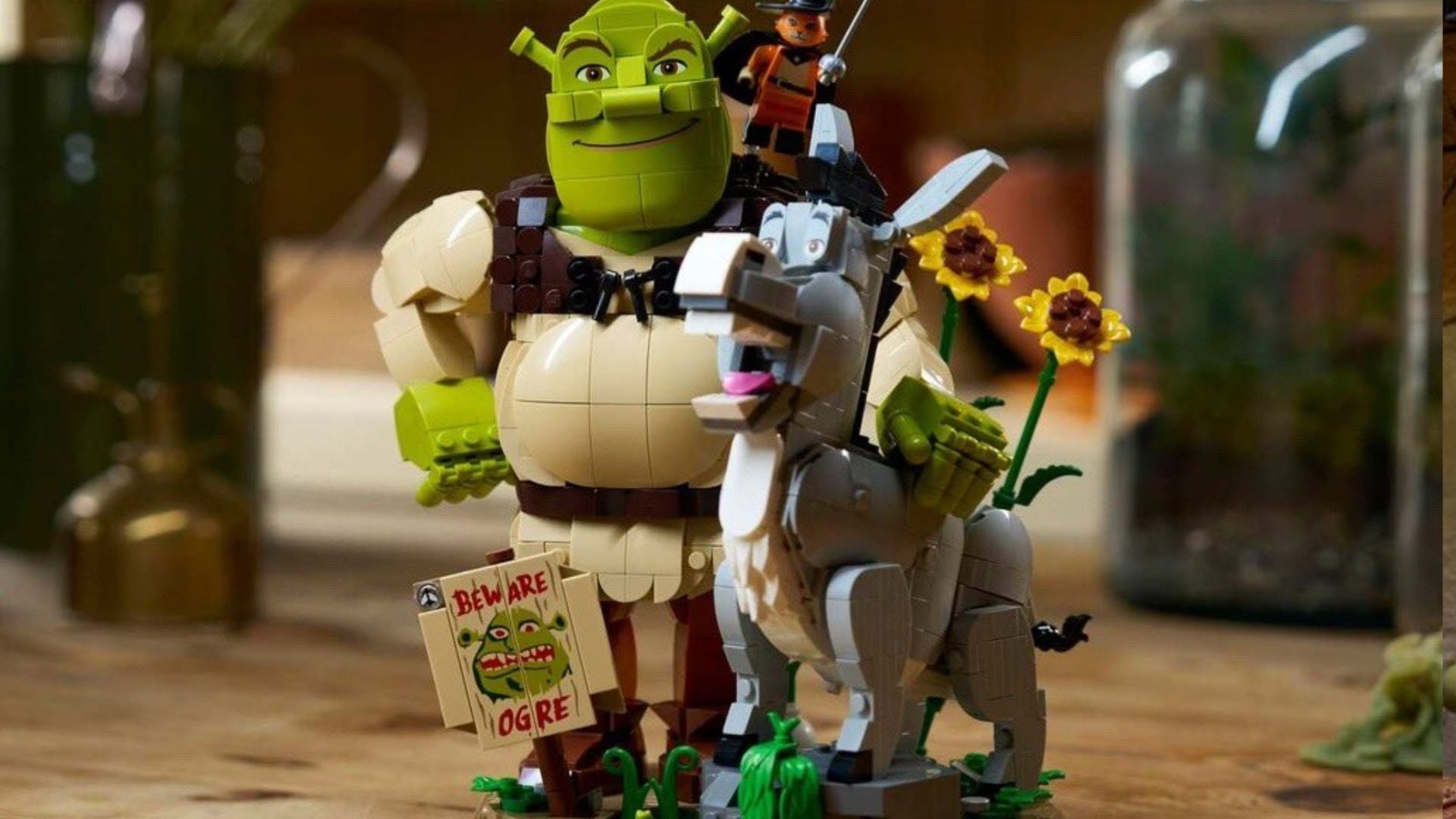 El lanzamiento incluye dos sets principales, donde el más destacado es un modelo de más de 1,400 piezas que representa el pantano de Shrek, acompañado por figuras construibles del protagonista y Burro, además de una minifigura del Gato con Botas. El set cuenta con referencias como el letrero de “Cuidado con el ogro” y varios guiños de la película.