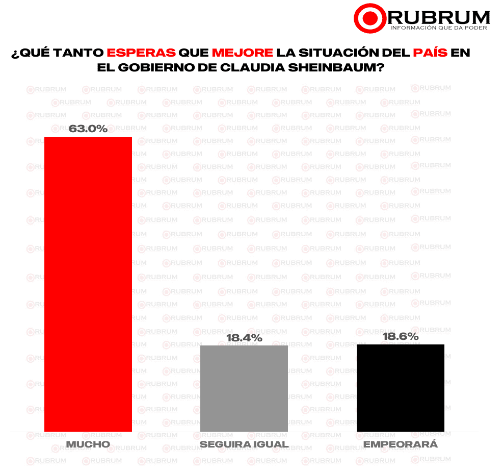 A 100 días de que Claudia Sheinbaum se haya convertido en la primera presidenta del país, el 63% confía en que la situación del país mejore. Por su parte el 18.4% estima que «todo seguirá igual», en tanto que el 18.6% señala que «empeorará».
