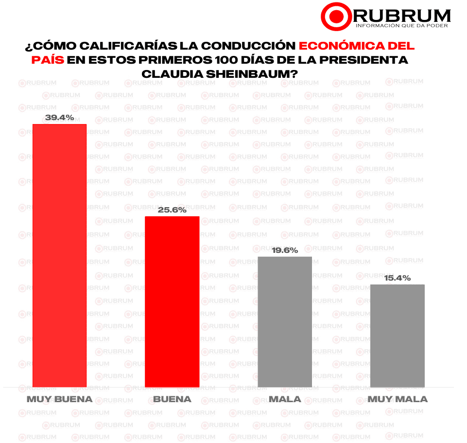 Contrario al 19.6% y al 15.4% que perciben como “mala” y “muy mala” la economía del país a cien días del inicio de su gestión como presidenta de México.
