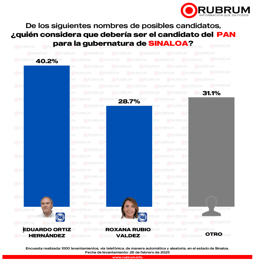 Encuesta realizada: 1000 levantamientos, vía telefónica, de manera automática y aleatoria, en el estado de Sinaloa. Fecha de levantamiento: 26 de febrero de 2025