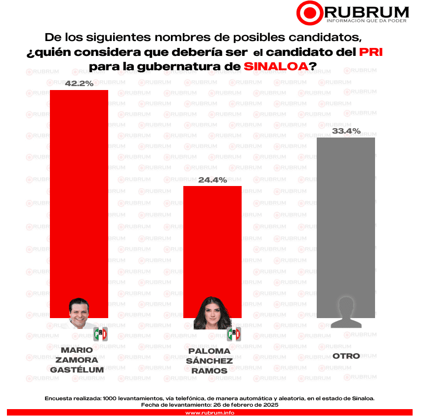 El perfil destacado para representar al PRI es el legislador Mario Zamora Gastélum con el 42.2% por ciento.