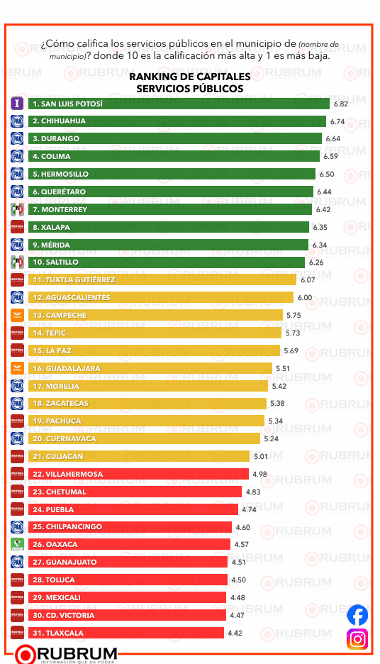 RUBRUM presentó la segunda encuesta ciudadana del 2025 respecto al desempeño general de los alcaldes de todas las capitales de México. Los resultados de la encuesta mensual sobre los 31 ayuntamientos del país evalúan desde el desempeño de los presidentes municipales, la percepción de los servicios públicos hasta la seguridad en las ciudades durante el mes de febrero.
