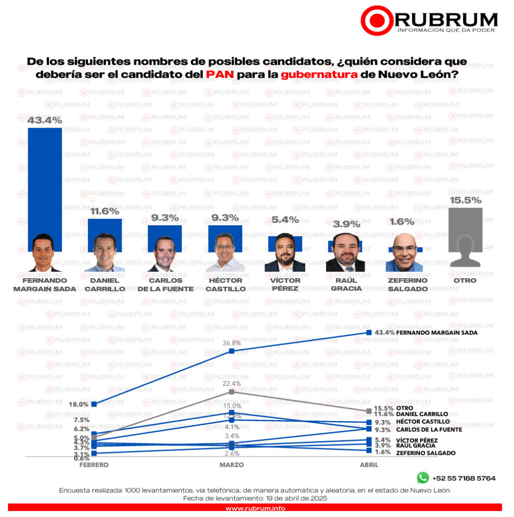 - PAN: Fernando Margáin se posiciona como el aspirante más fuerte dentro del partido, superando a Daniel Carrillo y a Carlos de la Fuente.