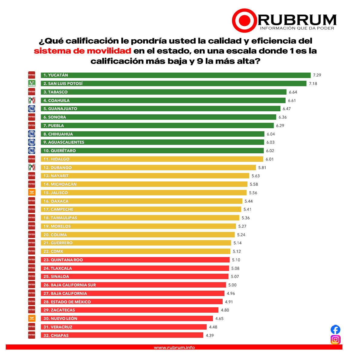 • Chiapas, Veracruz, Nuevo León, Zacatecas y Estado de México son los cinco estados peor evaluados en el sistema de movilidad.