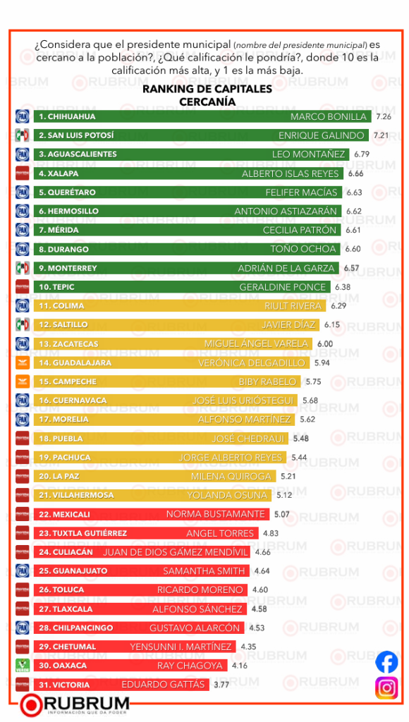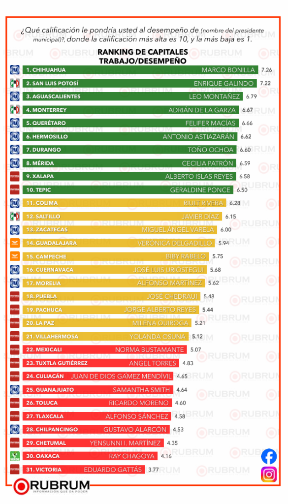 RUBRUM presentó la primera encuesta ciudadana del año respecto al desempeño general de los alcaldes de todas las capitales de México.