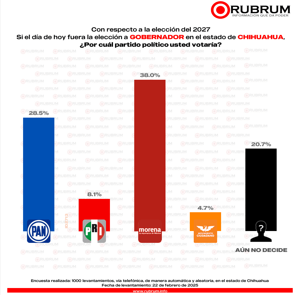 RUBRUM: Intención de voto por partido rumbo a la gubernatura 2027, en Chihuahua