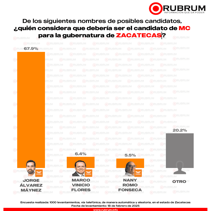 - Movimiento Ciudadano: Jorge Álvarez Máynez sobresale como el mejor posicionado en Zacatecas por el partido naranja.