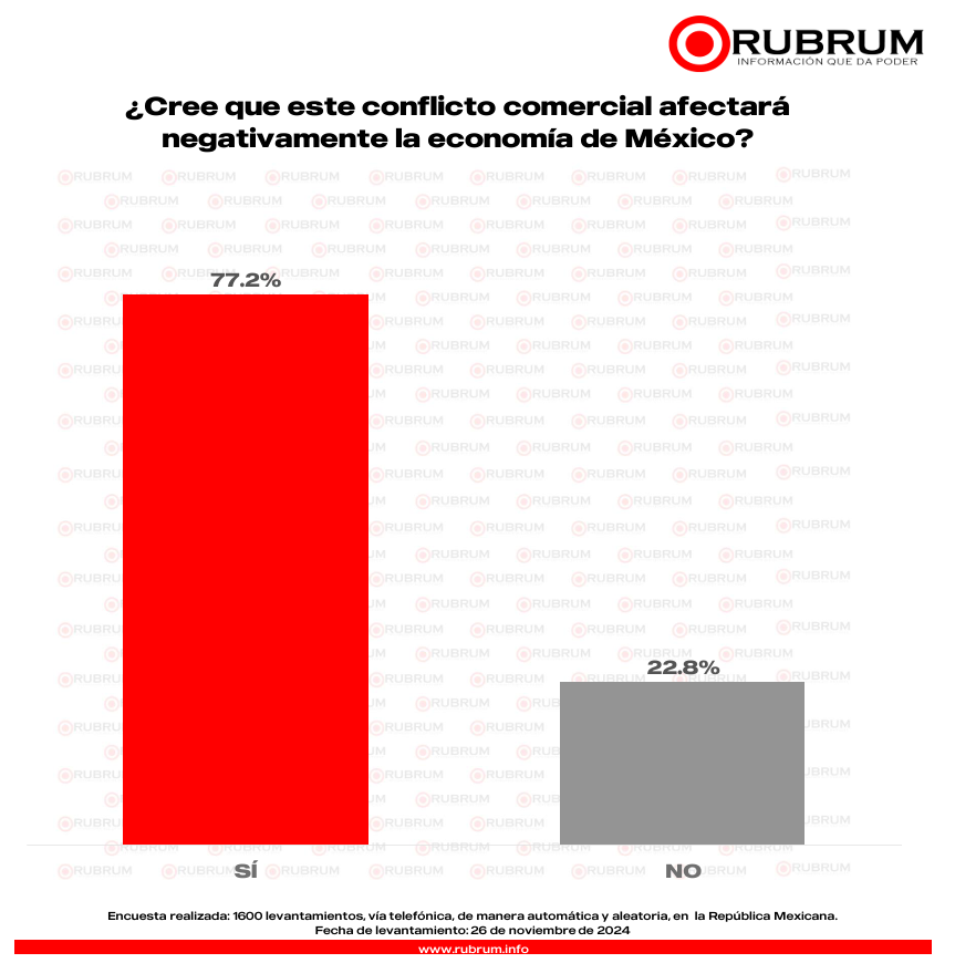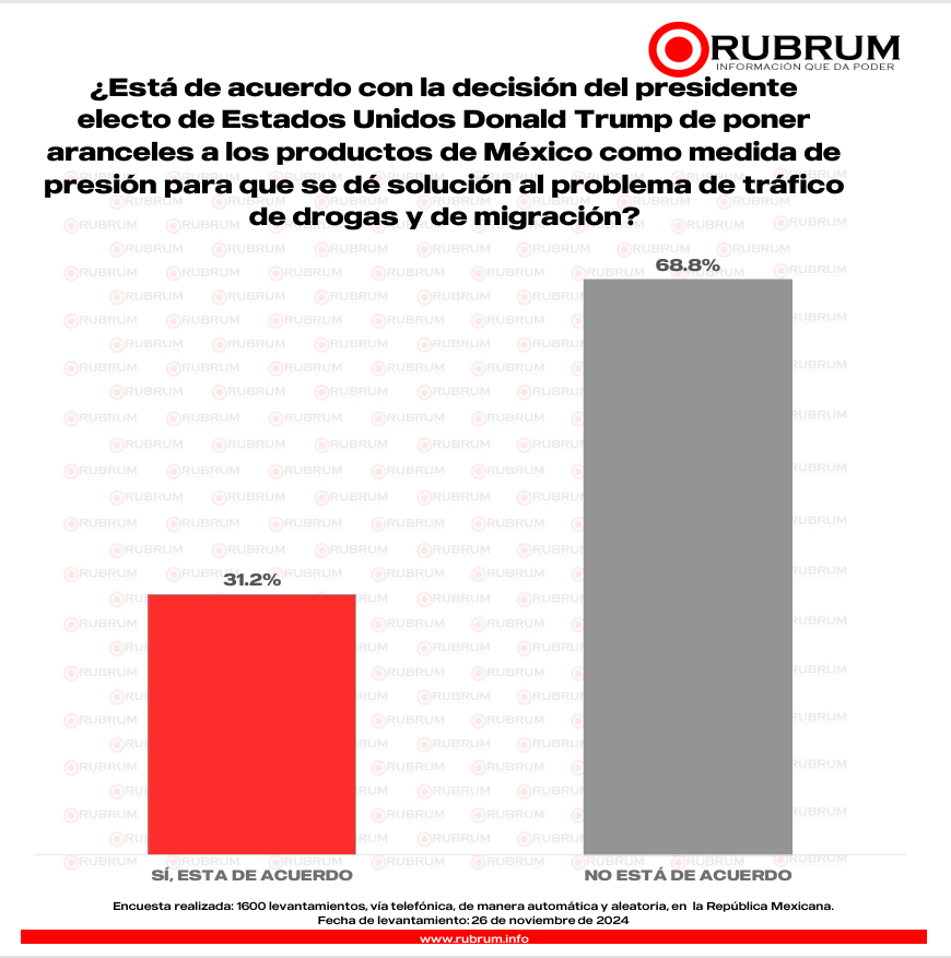 La última encuesta de RUBRUM, levantada el 26 de noviembre sobre la propuesta de Donald Trump de poner aranceles a México arrojó los siguientes hallazgos:
