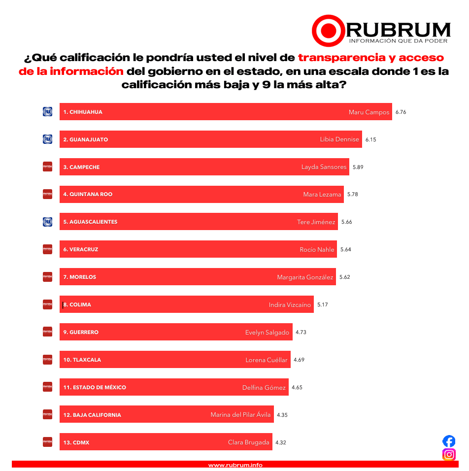 Chihuahua encabeza el ranking de transparencia, seguido de Guanajuato, Campeche, Quintana Roo y Aguascalientes.