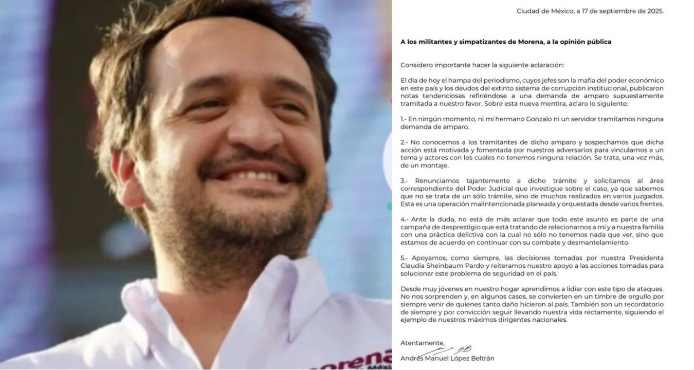 En un comunicado dirigido a los simpatizantes y a la opinión pública, López Beltrán aclaró que ni él ni su hermano Gonzalo presentaron juicios de amparo y asegura que se trata de un montaje orquestado por adversarios políticos.