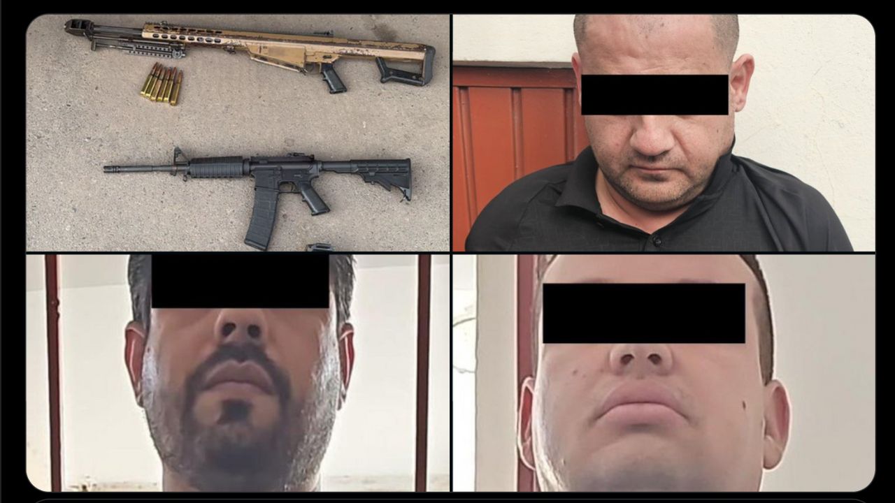 Tras efectuarles una revisión de seguridad, les encontraron tres armas largas, una de ellas un Barrett calibre 50, una mochila con 226 cartuchos útiles para arma larga, dos armas cortas y varias bolsitas con 250 gramos de pastillas de fentanilo.