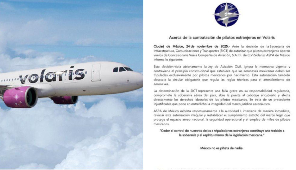 La Asociación Sindical de Pilotos Aviadores de México (ASPA) declaró la guerra abierta contra la autorización que la Secretaría de Infraestructura, Comunicaciones y Transportes (SICT) otorgó a Volaris para operar vuelos con pilotos extranjeros mediante contratos de wet-lease (arrendamiento de aeronave con tripulación incluida).