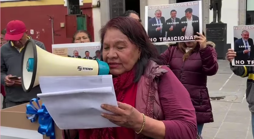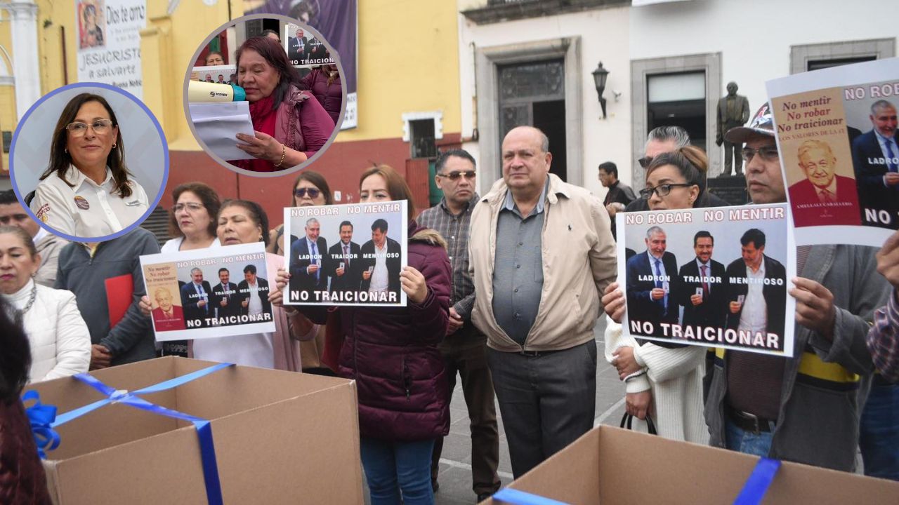 En las imágenes que circulan en redes sociales, se puede observar a los manifestantes mostrar diversas fotografías en las que se observa el momento en el que Miguel Ángel Yunes Márquez es afiliado en compañía de los senadores de Morena, Adán Augusto López Hernández y Gerardo Fernández Noroña con la leyenda “No mentir, no robar y no traicionar”.