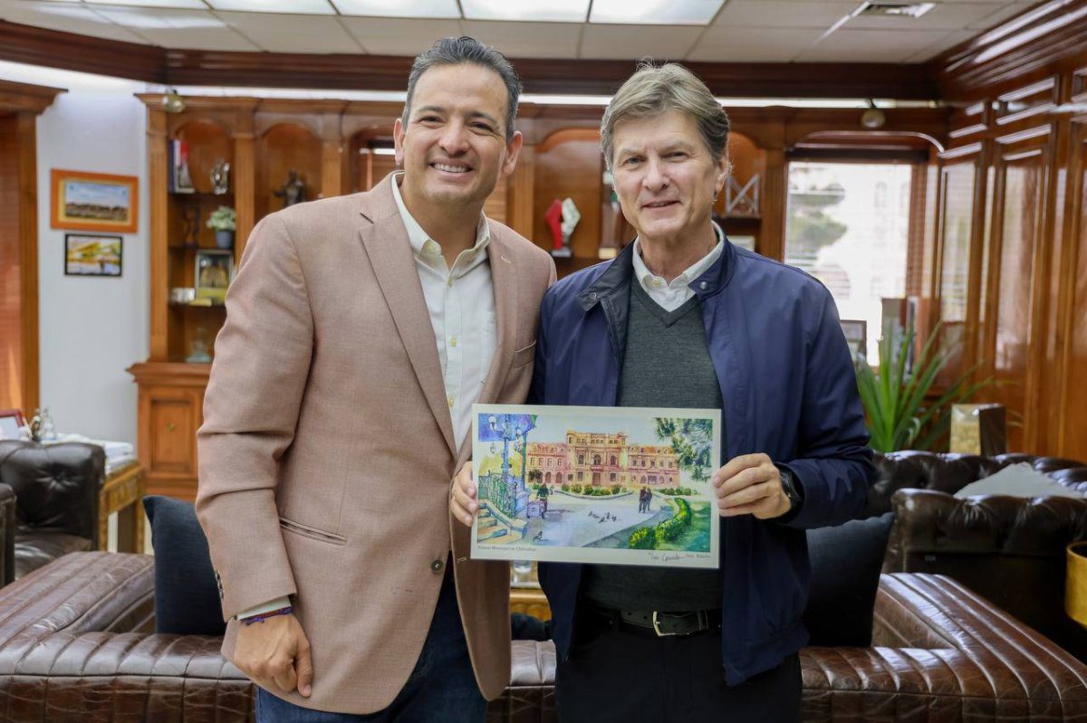 “Fue un gusto recibir a Enrique de la Madrid, a quien le platiqué la historia de que, gracias a las gestiones del alcalde Don Mario de la Torre, fue su papá, el presidente Miguel de la Madrid, quien devolvió la propiedad del palacio municipal al pueblo de Chihuahua”, mencionó Bonilla.