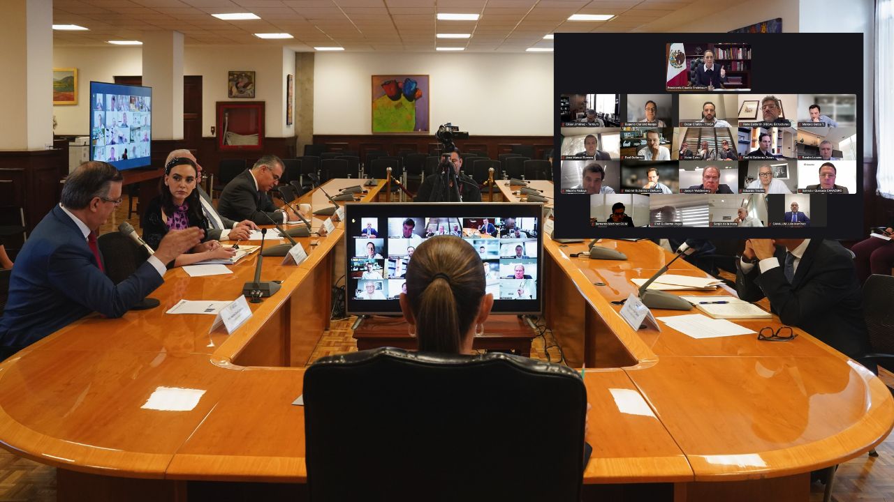 La presidenta Claudia Sheinbaum sostuvo una reunión virtual con empresarios del acero y del aluminio, en la que también estuvieron presentes los secretarios de Hacienda y Economía: Edgar Amador y Marcelo Ebrard para abordar las medidas que se llevarán a cabo para frenar los aranceles del 50 por ciento impuestos por Estados Unidos.