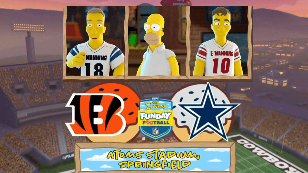 La transmisión del juego de los Dallas Cowboys y los Cincinnati en el Monday Night Football se vio apoderada de los personajes amarillos más icónicos de la televisión: Los Simpsons, donde aparecieron Homero y su familia, además de cientos de referencias a esta famosa serie animada.