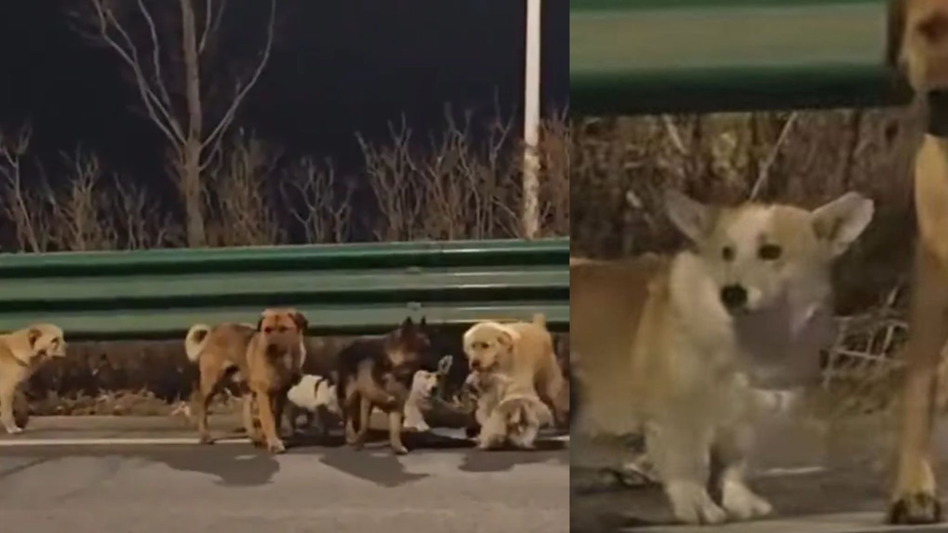 Lejos de dispersarse, los siete perros permanecieron juntos en todo momento, avanzando en grupo por carreteras y zonas abiertas. Testimonios y videos difundidos en redes muestran que incluso se organizaron durante el recorrido: un pequeño corgi iba al frente, guiando al resto, mientras otros ejemplares protegían a un pastor alemán que resultó herido.