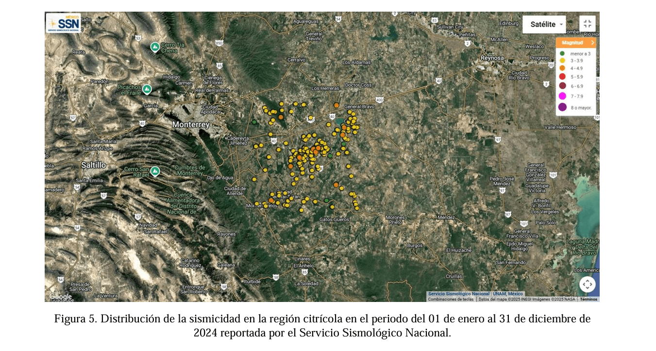 Históricamente, Nuevo León ha sido considerado un estado con escasa o nula actividad sísmica. Sin embargo, desde hace más de 15 años se han documentado al menos 162 terremotos en la región citrícola del estado, con magnitudes que oscilan entre 2.8 y 4.5 grados.