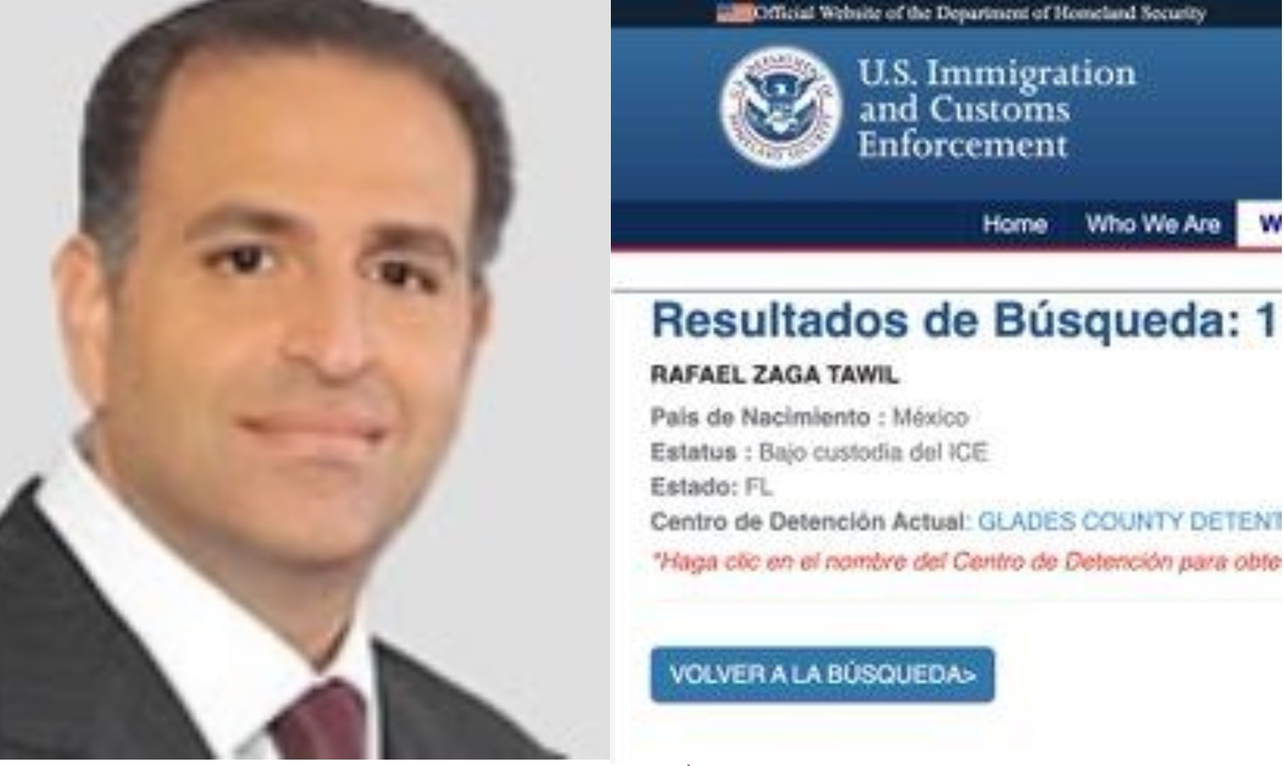 El Servicio de Inmigración y Aduanas de Estados Unidos (ICE) detuvo al empresario mexicano Rafael Zaga Tawil en Florida.