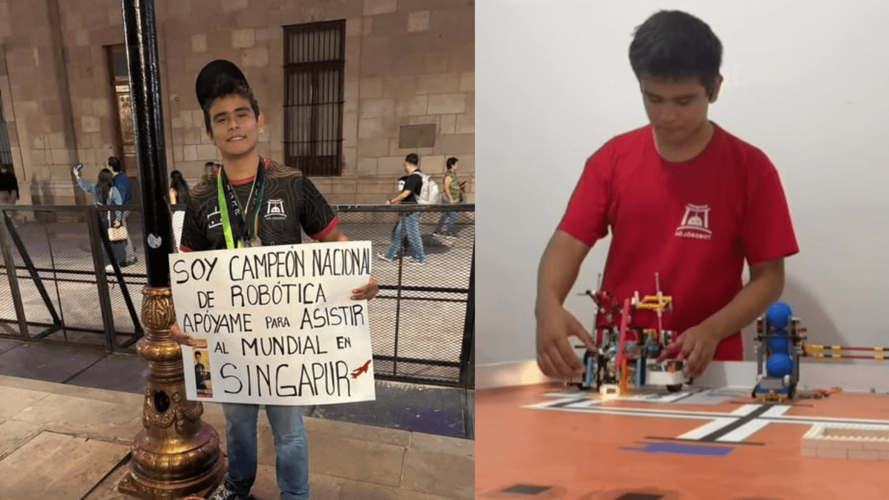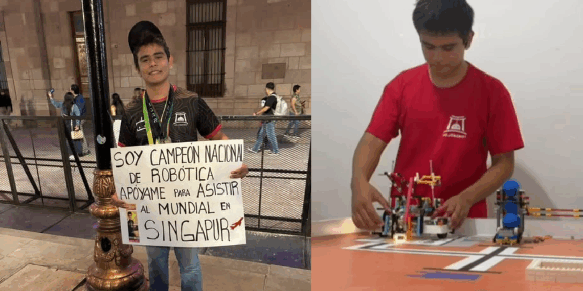 En las imágenes que circulan en redes sociales, Honoré Alessandro Villanueva Hernández salió a las calles de la capital de San Luis Potosí para pedir apoyo económico para sus viáticos hacia Singapur. Honoré, de apenas 15 años, forma parte de la Delegación Mexicana de Robótica, conformada por los equipos chaBots Nerv, chaBots Kirby y chaBots Obsidiana, y se ganó su lugar tras destacar en torneos nacionales de robótica, y ahora tiene la oportunidad de medir fuerzas con equipos de todo el mundo.