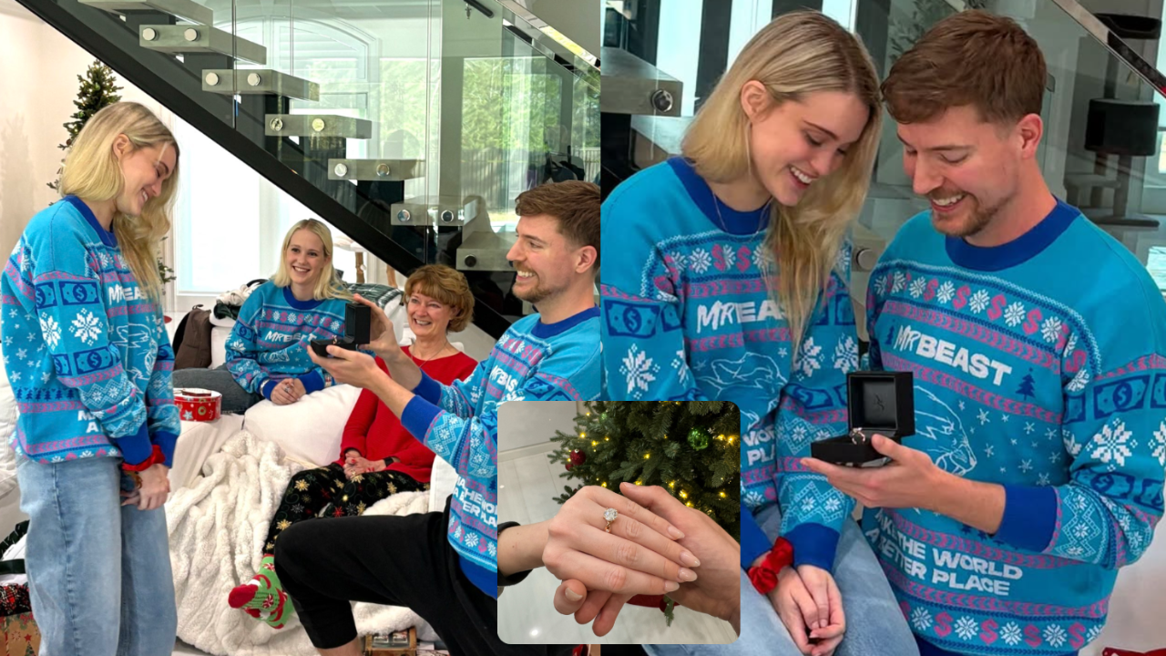 Arrodillado y presentándole una caja donde portaba el anillo, se veía a MrBeast sorprendiendo a Thea entre los regalos de navidad. Jimmy confirmó que la propuesta se llevó a cabo la mañana del 25 de diciembre, sin embargo, la hizo pública hasta este miércoles 1 de enero.
