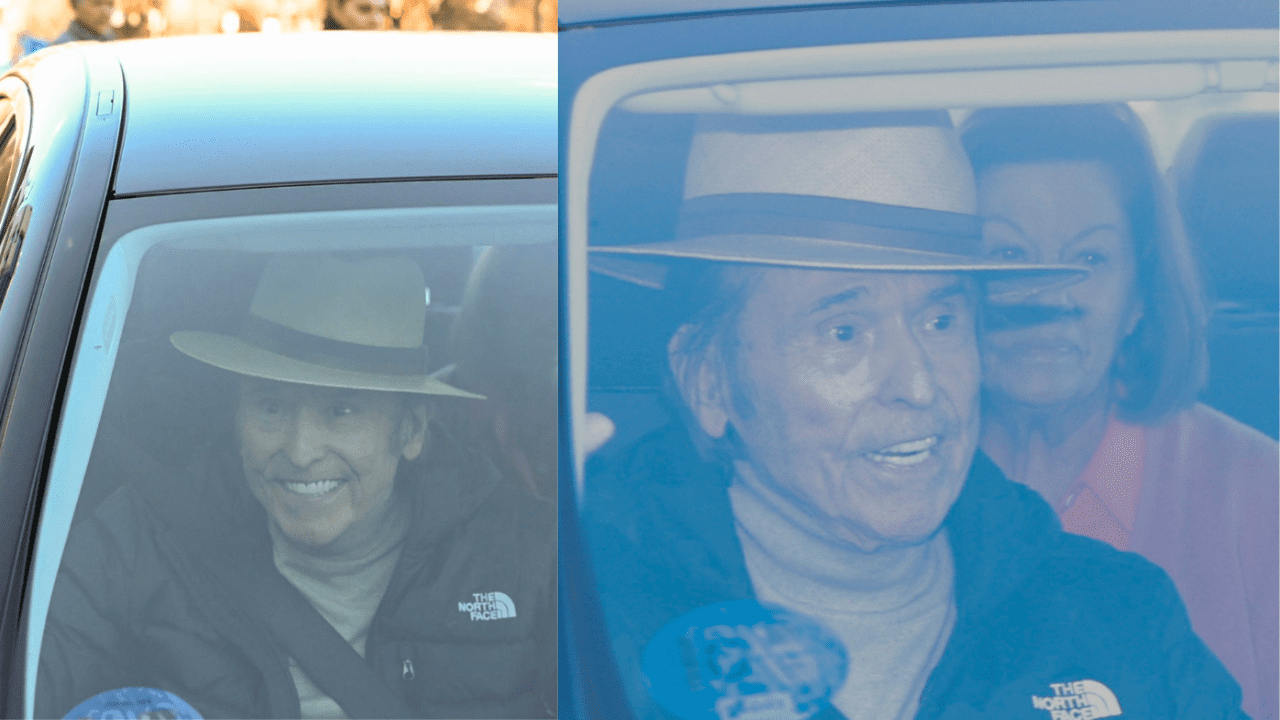 Sonriendo y saludando a la prensa que lo estaba esperando, Raphael, portando un sombrero, salió en un vehículo sentado en la parte del copiloto, sin detenerse a dar algunas palabras a los medios de comunicación tras haber sido dado de alta en el hospital.
