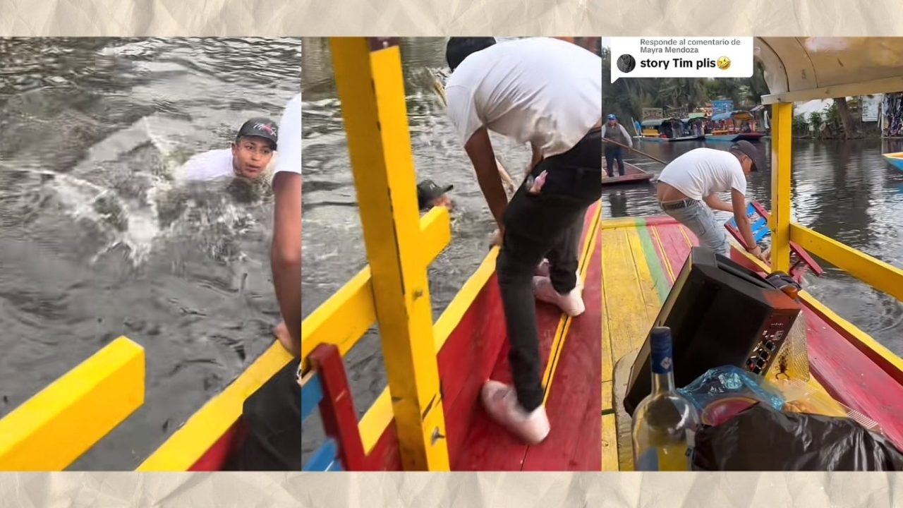 Un remero en estado de ebriedad cayó al canal durante una fiesta en Xochimilco. Usuarios critican la irresponsabilidad y alertan sobre los peligros